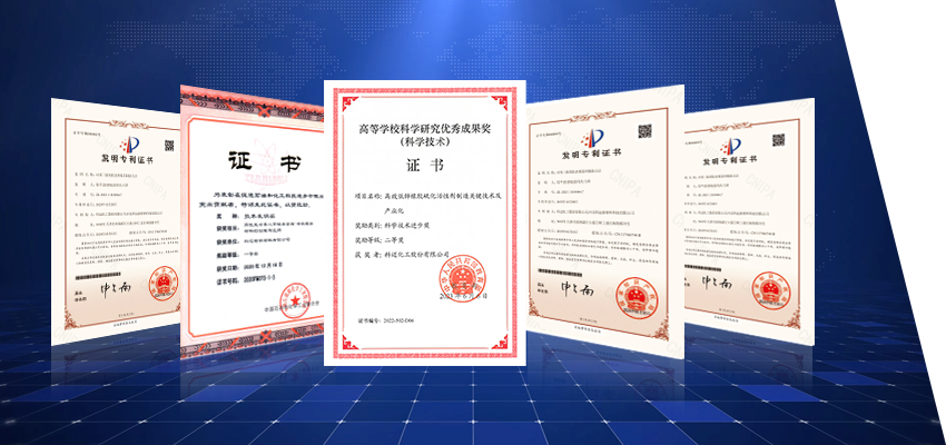 授權(quán)專利56項 發(fā)明專利39項 承擔(dān)科技項目20余項 獲科技進步獎10余項 新產(chǎn)品鑒定20項 國際領(lǐng)先3項,國際先進9項 起草國家及行業(yè)標(biāo)準(zhǔn)12項